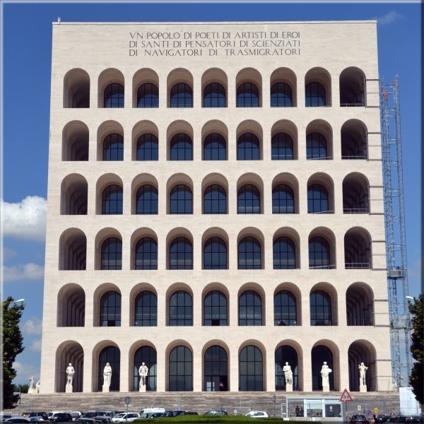 Il Palazzo della Civiltà Italiana all’EUR, conosciuto anche come Palazzo della Civiltà del Lavoro o "Colosseo quadrato", è sicuramente uno dei monumenti più discussi, ma anche tra i più familiari e conosciuti della Roma moderna. Se da un lato la sua difficile identità funzionale lo ha reso sempre un oggetto misterioso e spesso inutilizzato, al contrario la sua figura così perfetta ed inequivocabile ha trasformato il Palazzo nel monumento simbolo di un quartiere e forse di un preciso periodo storico. Il nome dell'edificio, progettato da Giovanni Guerrini, Ernesto La Padula, Mario Romano, previsto per l'Esposizione Universale Romana (1942) era "Mostra della Civiltà Romana”. Venne realizzato a partire dal 1938, fu inaugurato una prima volta nel 1940, anche se l’edificio doveva ancore essere completato. I lavori di edificazione si interruppero nel 1943, a causa della guerra, e ripresero soltanto nel 1951.