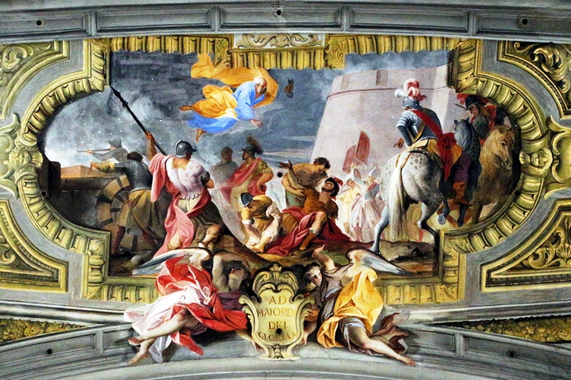 Sul lato sinistro del presbiterio c’è una gigantesca statua di Sant’Ignazio, scolpita da Camillo Rusconi (XVIII secolo).